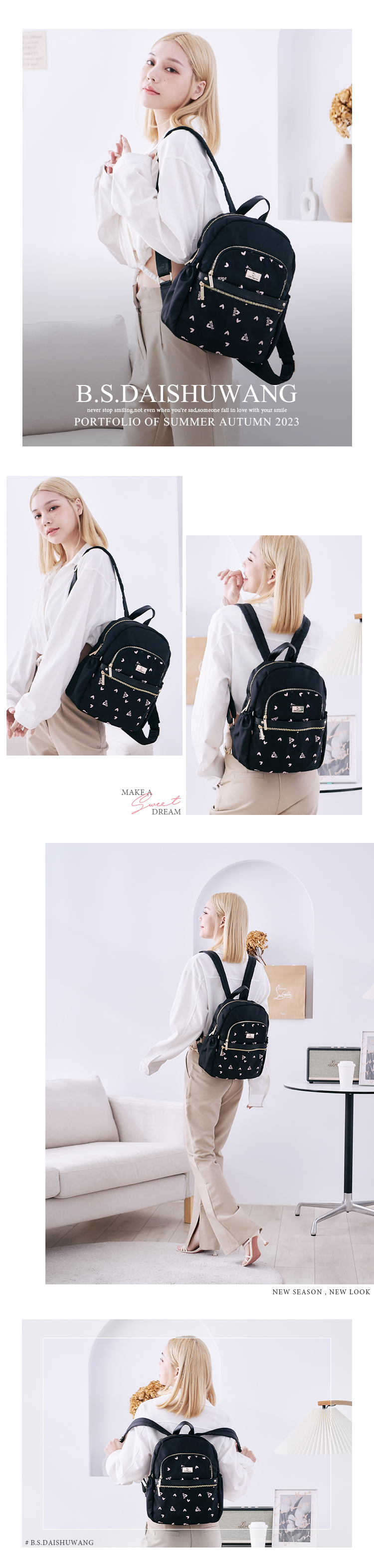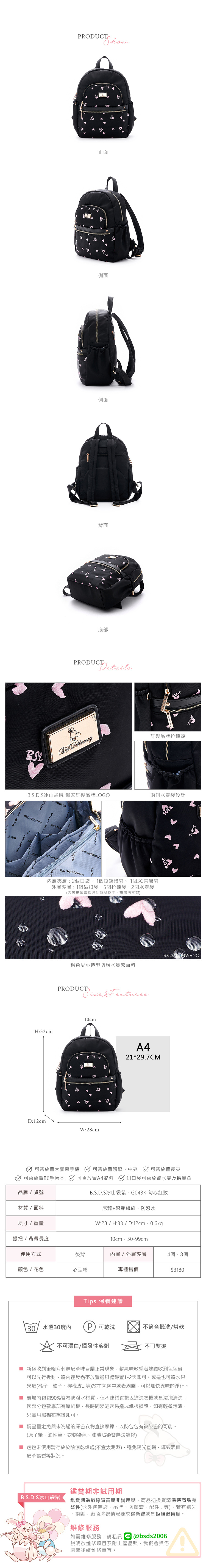 B.S.D.S冰山袋鼠 - 勾心紅妝 - 甜美刺繡多口袋後背包 - 心型粉【G043K】