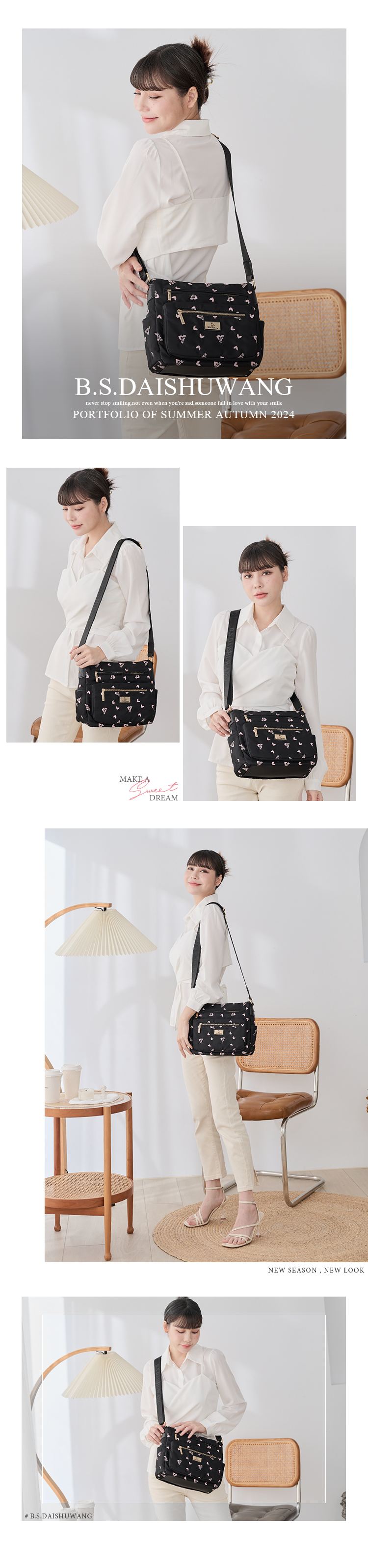 B.S.D.S冰山袋鼠 - 勾心紅妝 - 甜美刺繡多夾層斜背包 - 心型粉【G069K】