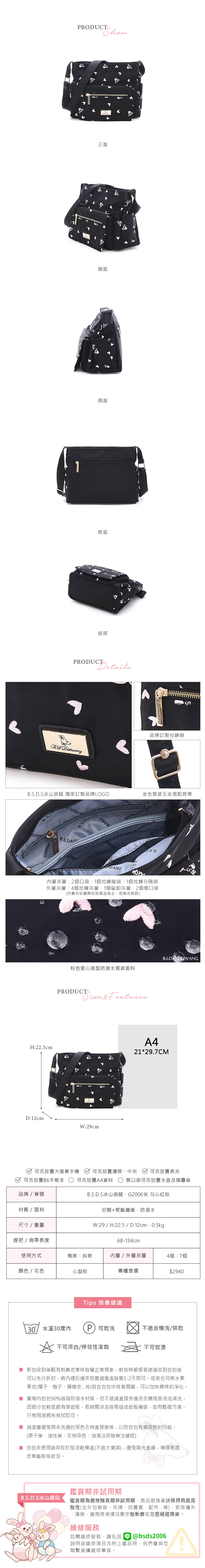 B.S.D.S冰山袋鼠 - 勾心紅妝 - 甜美刺繡多層收納斜背包 - 心型粉【G20061K】