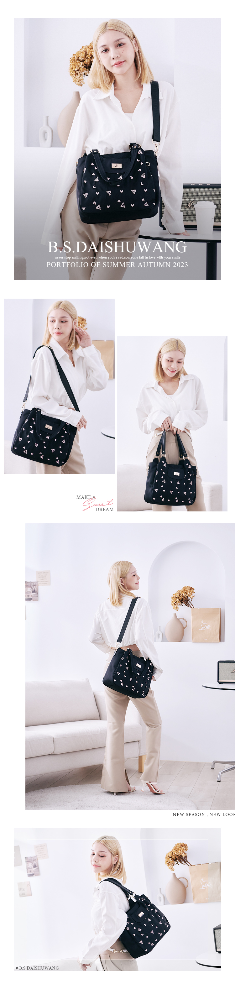 B.S.D.S冰山袋鼠 - 勾心紅妝 - 甜美刺繡兩用托特包 - 心型粉【G980K】
