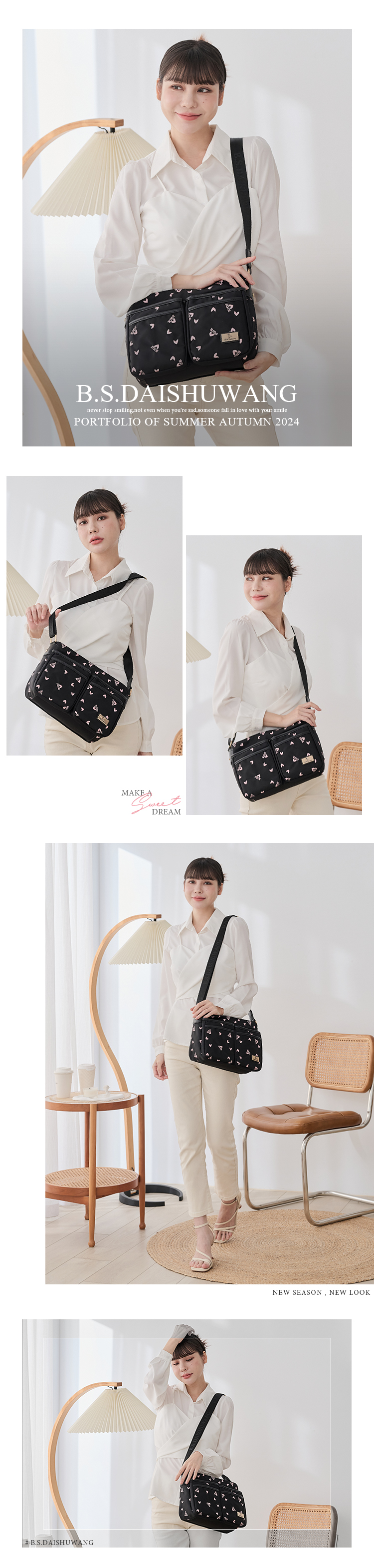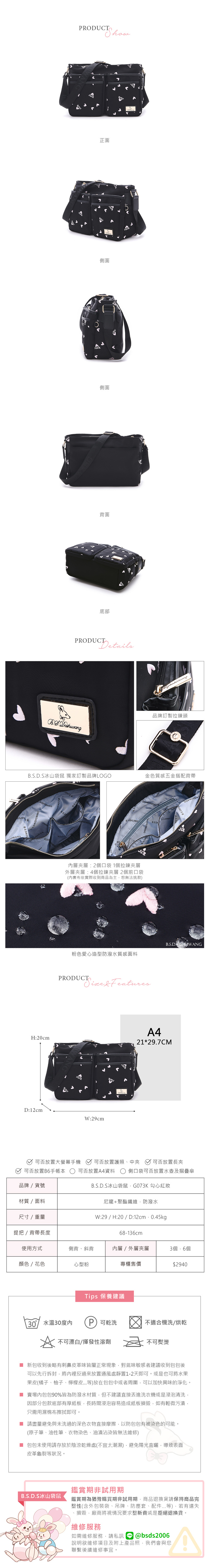 B.S.D.S冰山袋鼠 - 勾心紅妝 - 甜美刺繡雙口袋斜背包 - 心型粉【G073K】