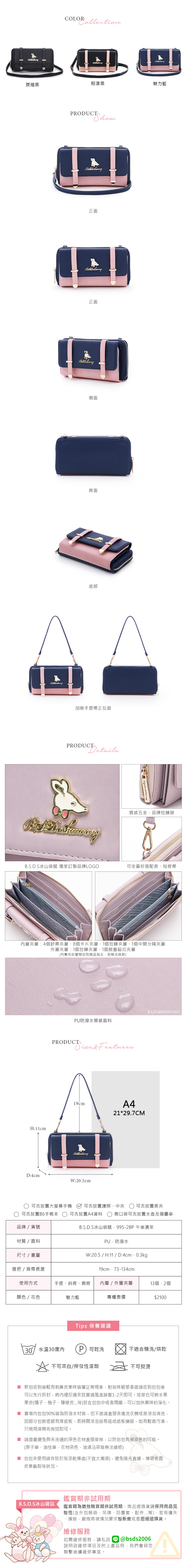 B.S.D.S冰山袋鼠 - 午後濃茶 - 簡約實搭萬用隨身包 - 魅力藍【995-2BP】