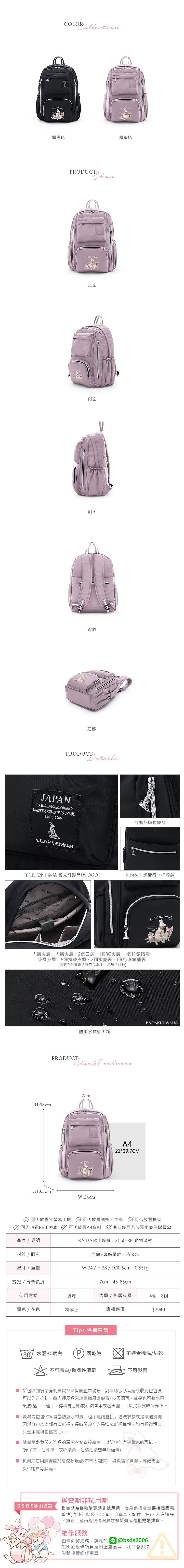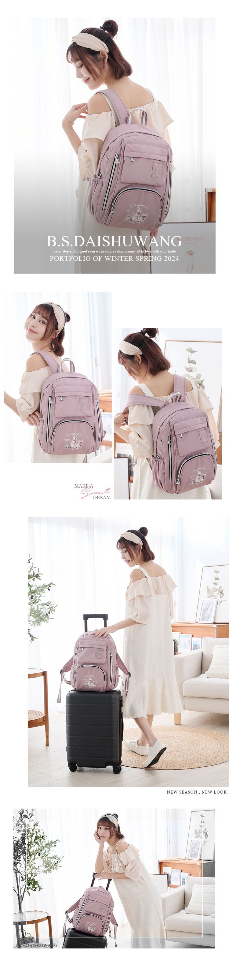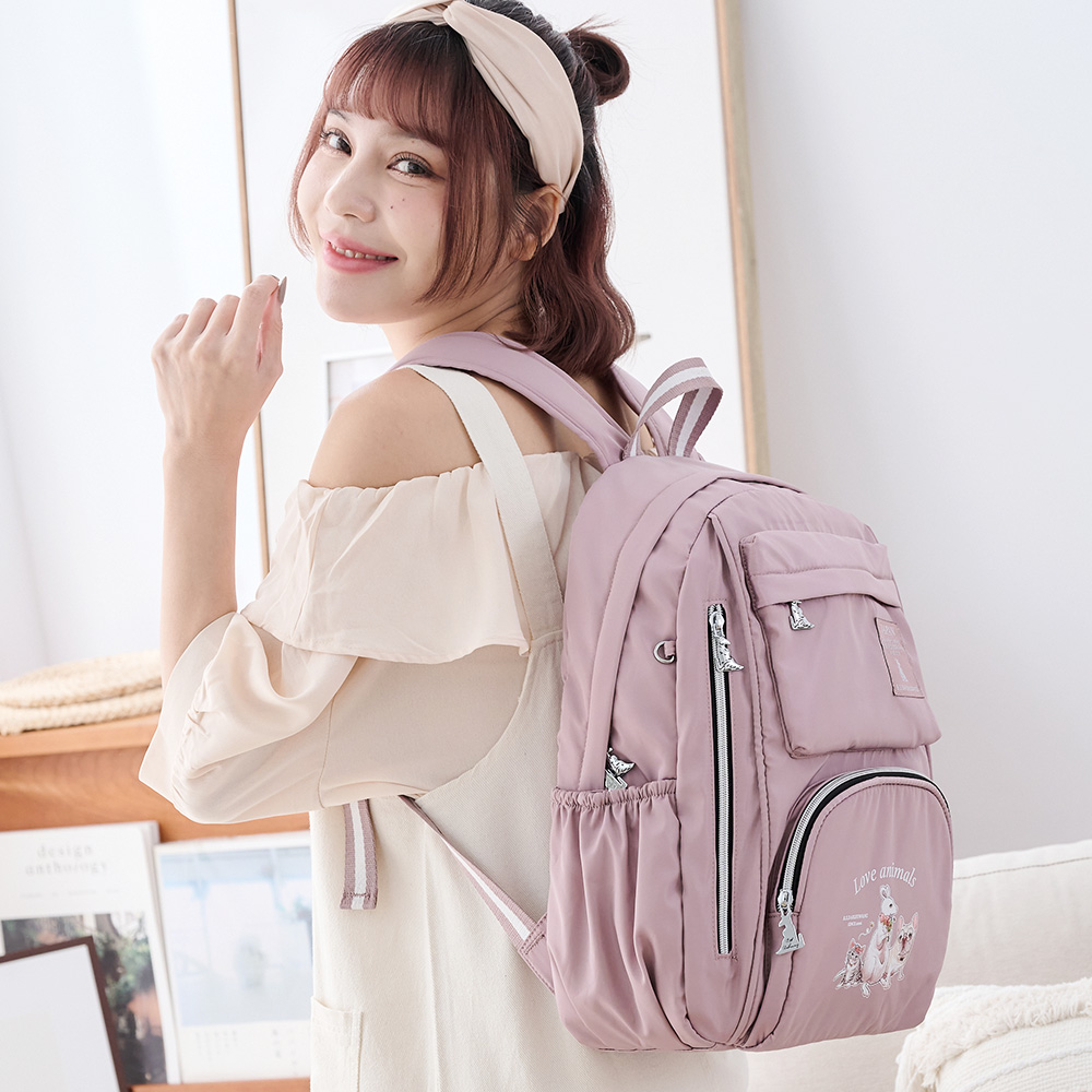 B.S.D.S冰山袋鼠 - 動物派對 - 輕旅大容量附插袋後背包 - 粉紫色【Z060-3P】