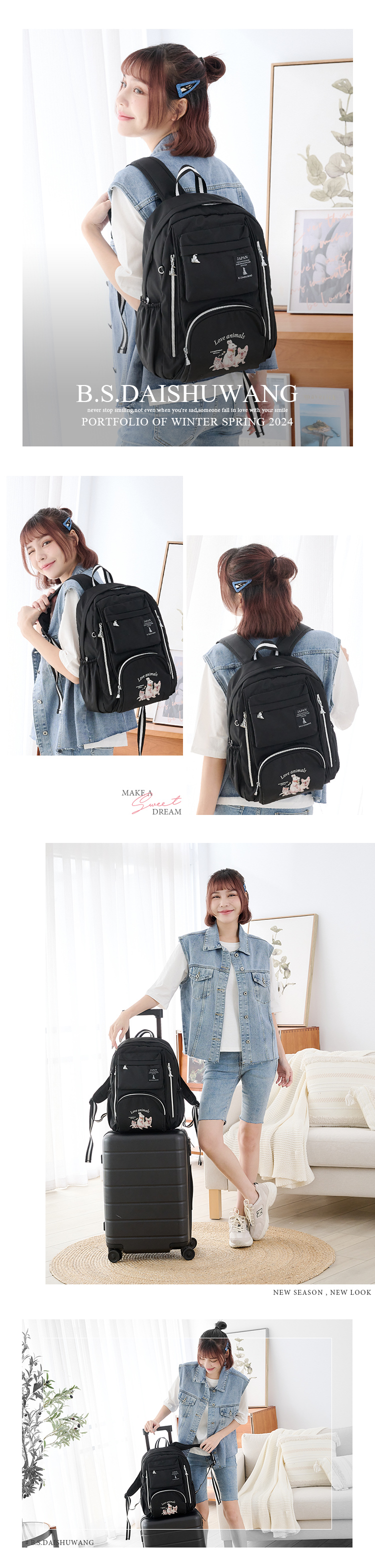 B.S.D.S冰山袋鼠 - 動物派對 - 輕旅大容量附插袋後背包 - 霧黑色【Z060-3K】