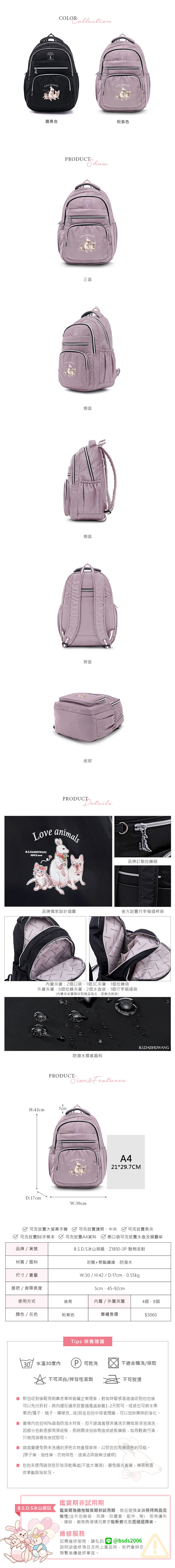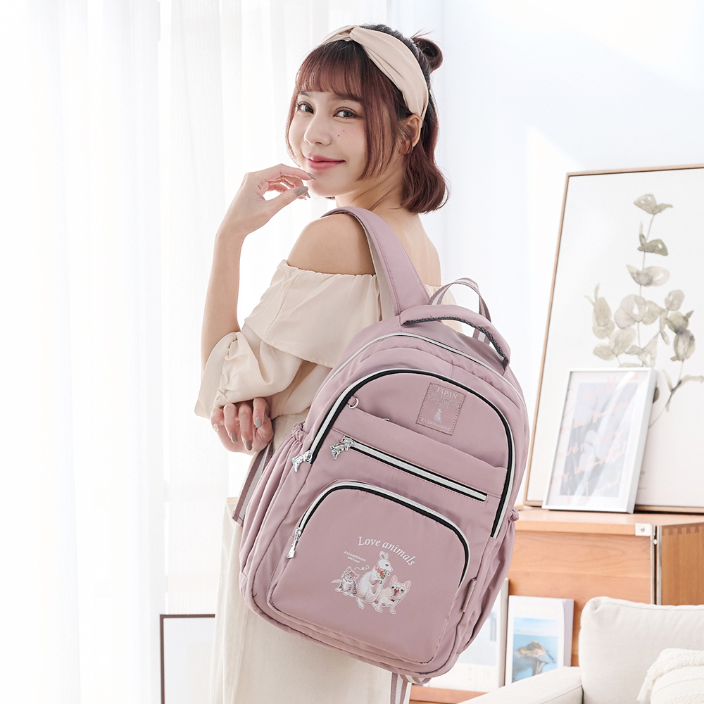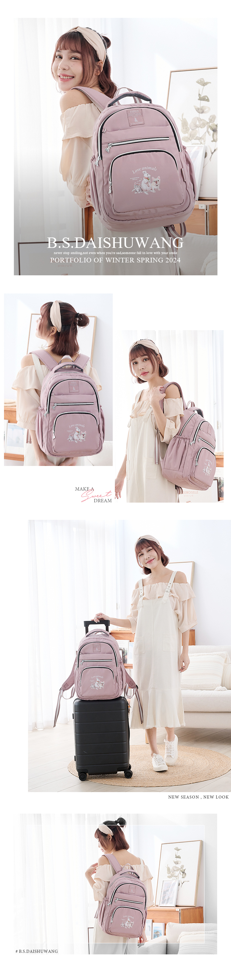 B.S.D.S冰山袋鼠 - 動物派對 - 輕旅多層大容量附插袋後背包 - 粉紫色【Z1810-3P】