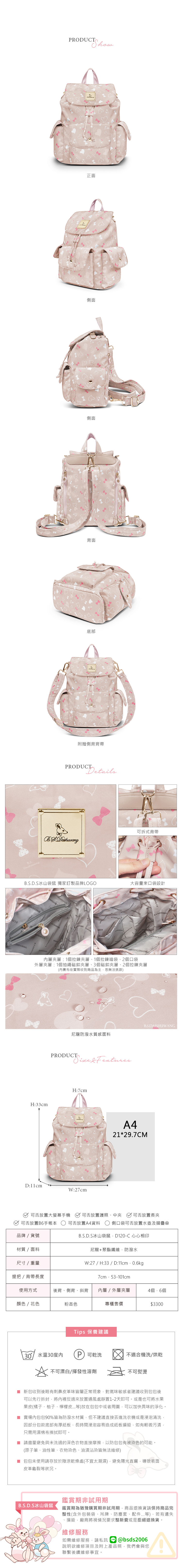 B.S.D.S冰山袋鼠 - 心心相印 - 溫柔多夾層後背包 - 粉杏色【D120-C】