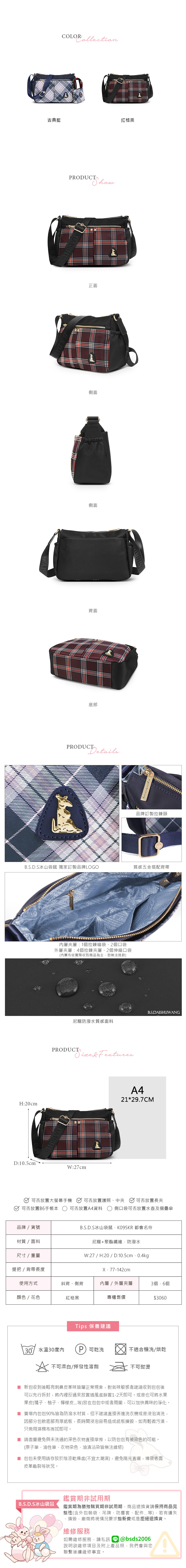 B.S.D.S冰山袋鼠 - 都會名伶 - 英倫風多層收納斜背包 - 紅格黑【K095KR】