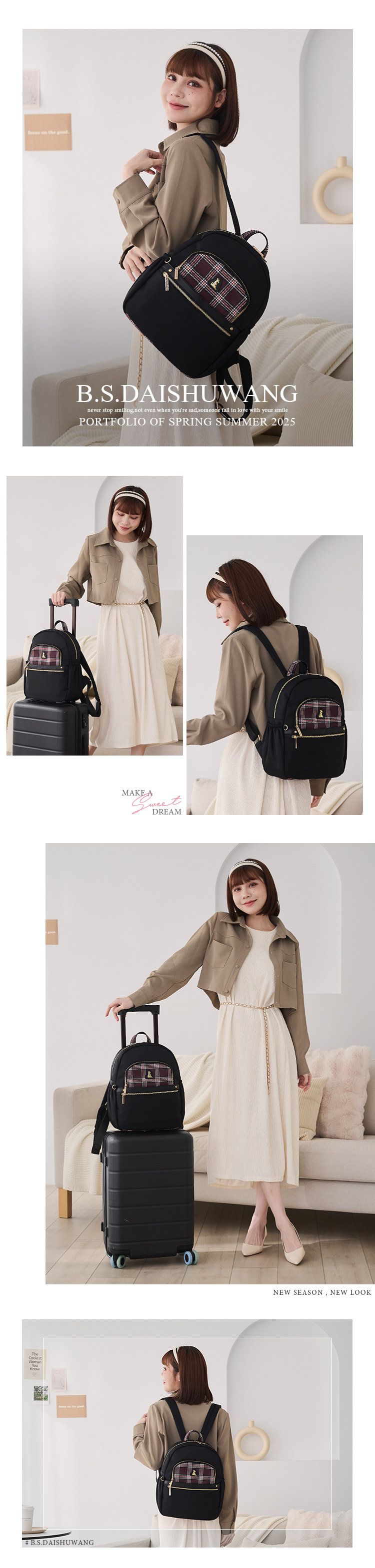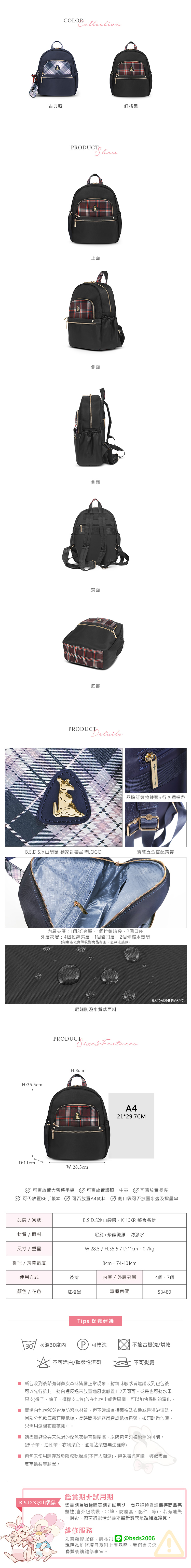 B.S.D.S冰山袋鼠 - 都會名伶 - 英倫風多口袋附插袋後背包 - 紅格黑【K116KR】