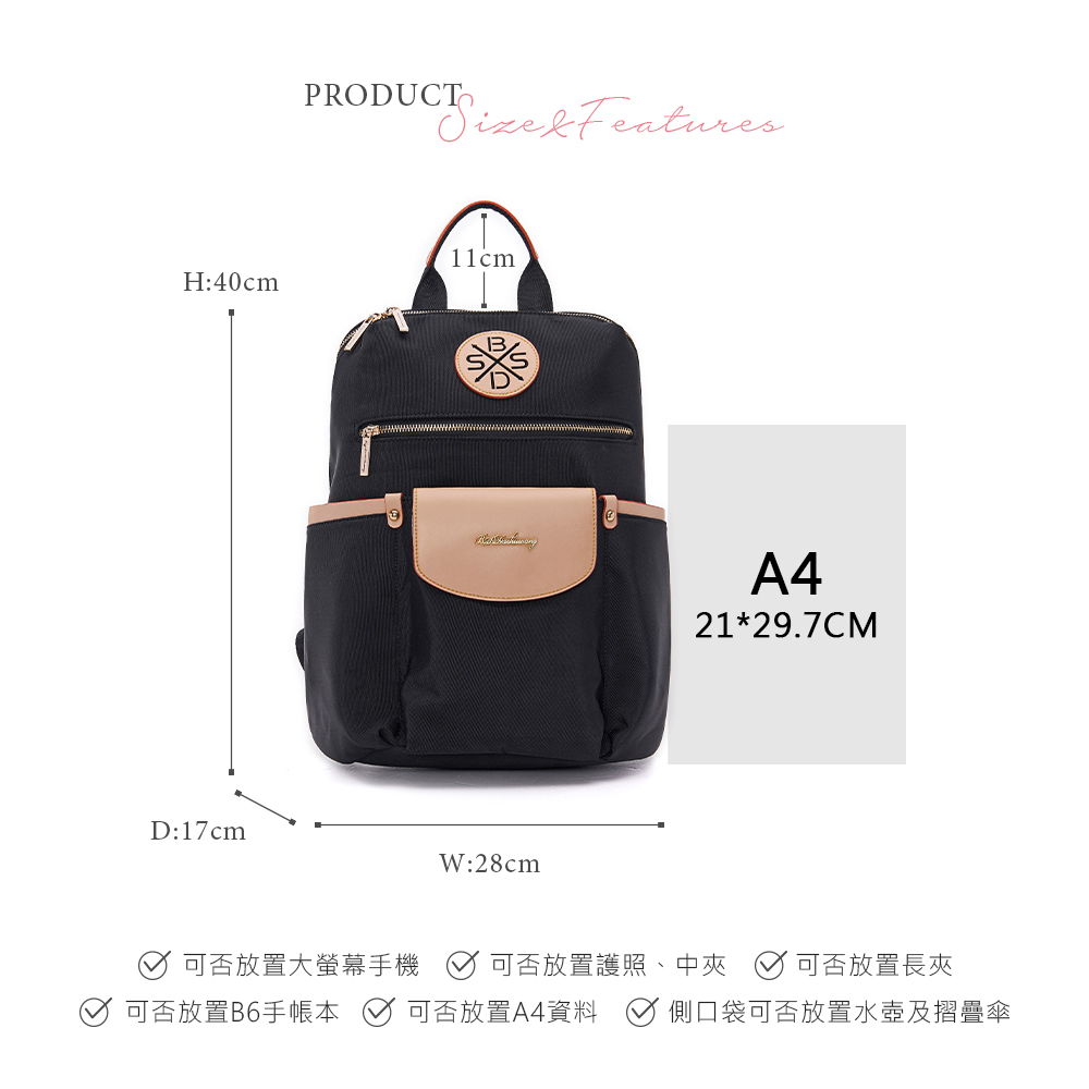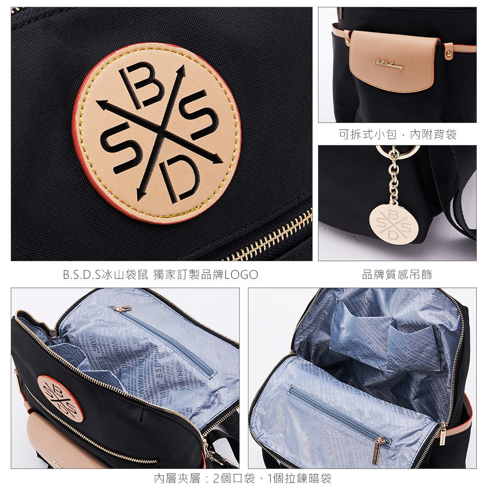 B.S.D.S冰山袋鼠 - 黑色狂想曲 - 古典輕奢可拆式後背包 - 駱色黑【S-090K】