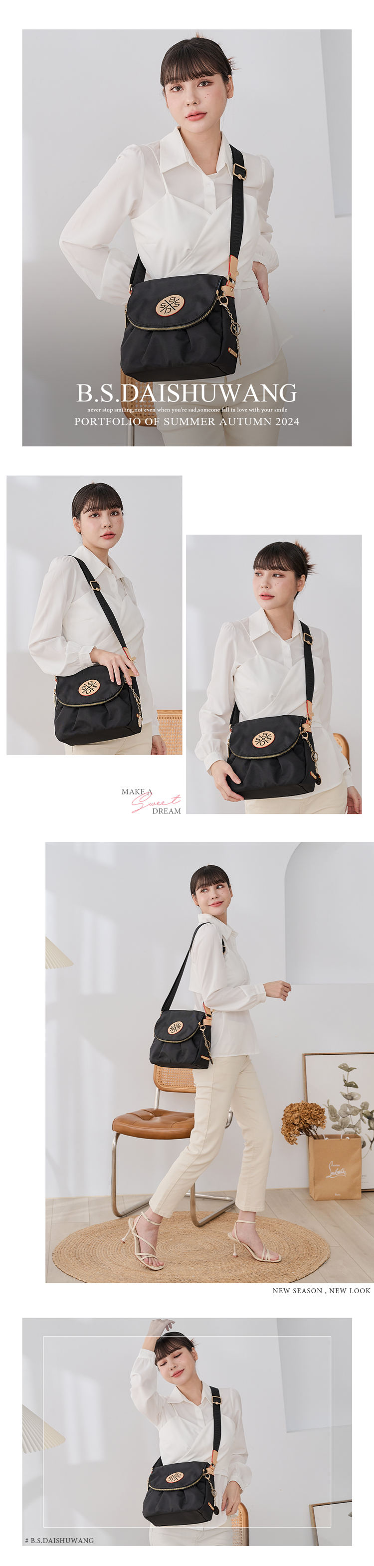 B.S.D.S冰山袋鼠 - 黑色狂想曲 - 古典輕奢掀蓋式斜背包 - 駱色黑【S-087K】