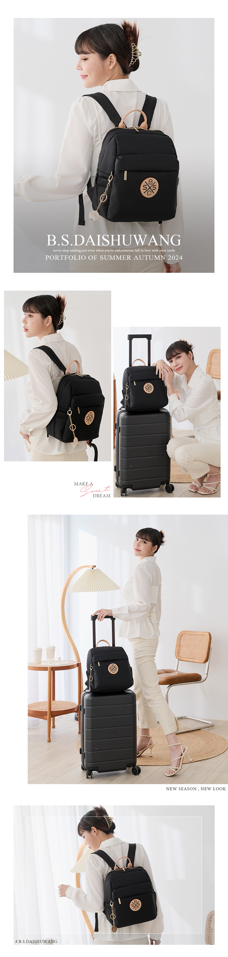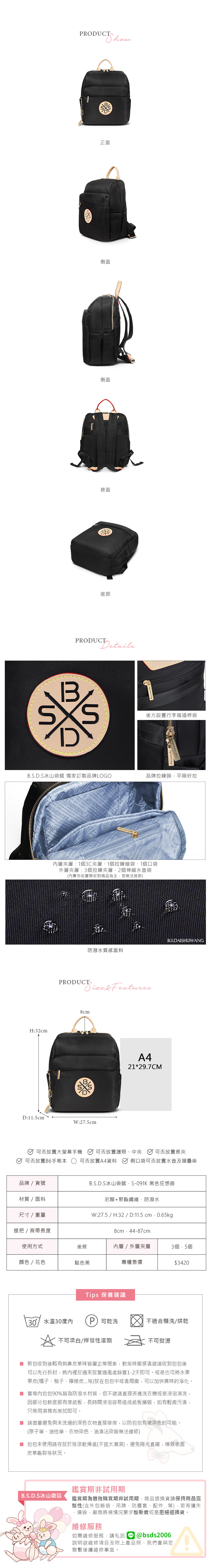 B.S.D.S冰山袋鼠 - 黑色狂想曲 - 古典輕奢造型附插袋後背包 - 駱色黑【S-091K】