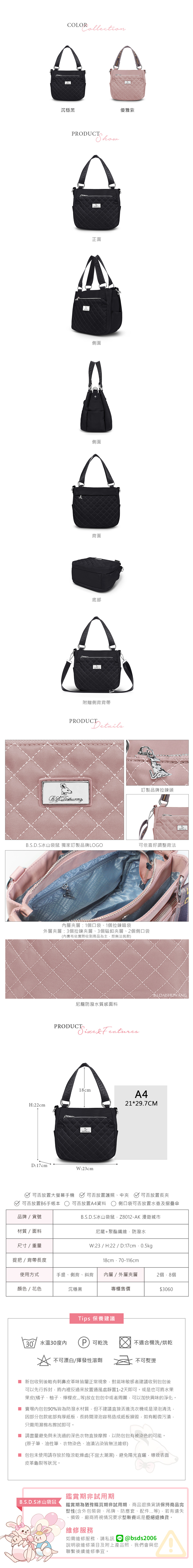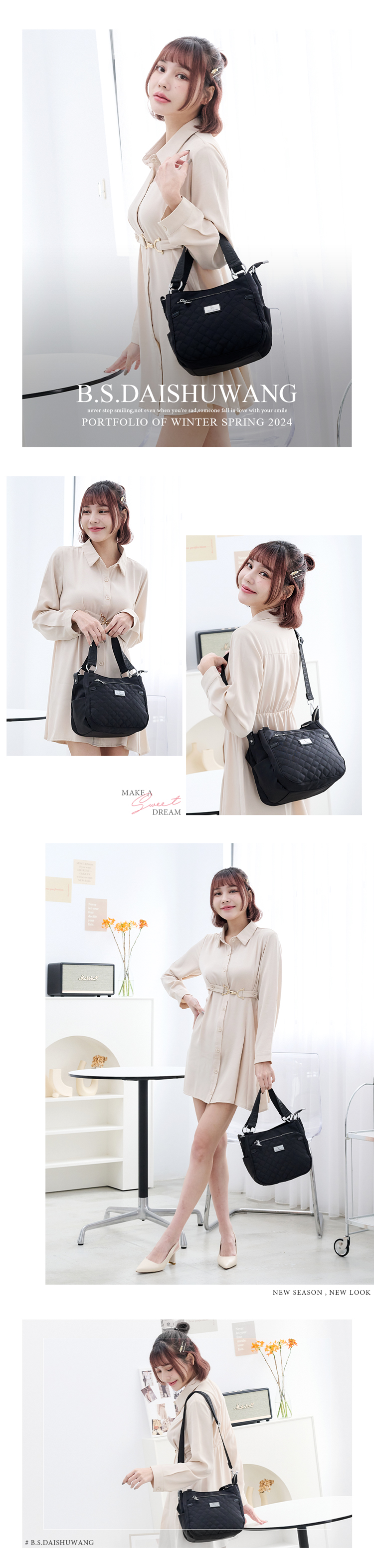 B.S.D.S冰山袋鼠 - 漫遊城市 - 小菱格手提兩用包 - 沉穩黑【Z8012-AK】