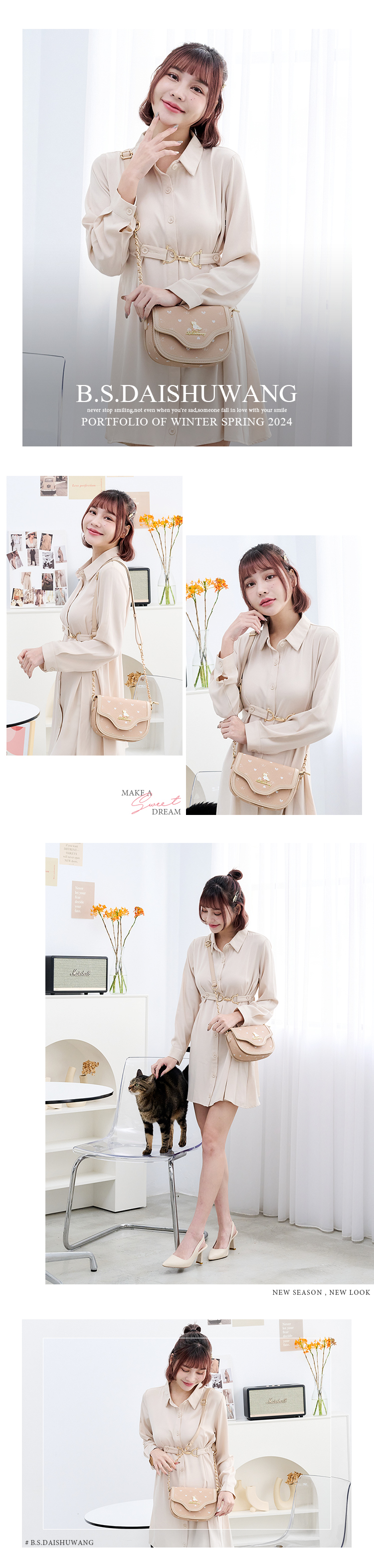 B.S.D.S冰山袋鼠 - 布朗小姐 - 甜美金鍊斜背馬鞍包 - 粉杏色【6155-C】
