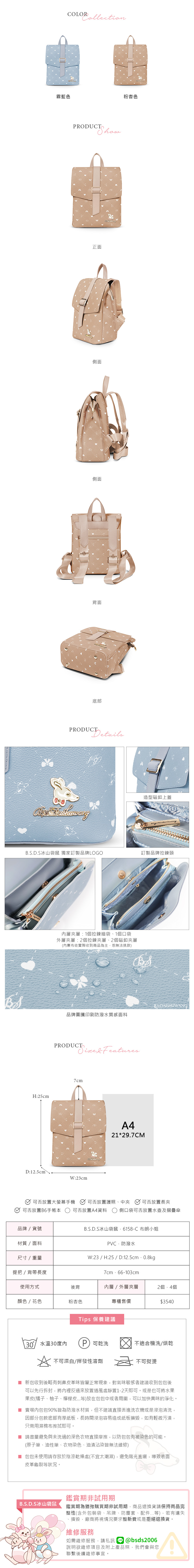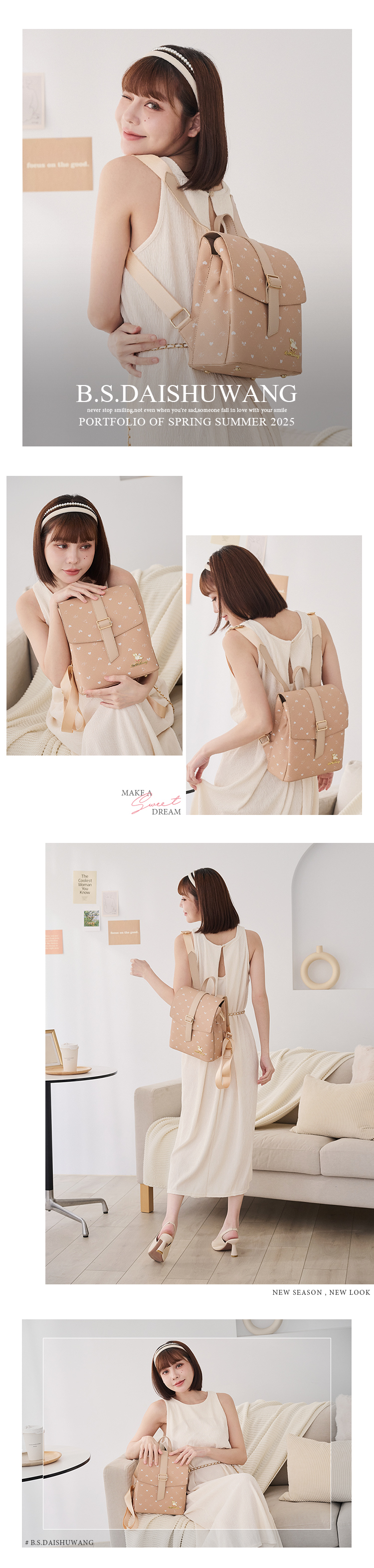 B.S.D.S冰山袋鼠 - 布朗小姐 - 甜美造型蓋釦後背包 - 粉杏色【6158-C】