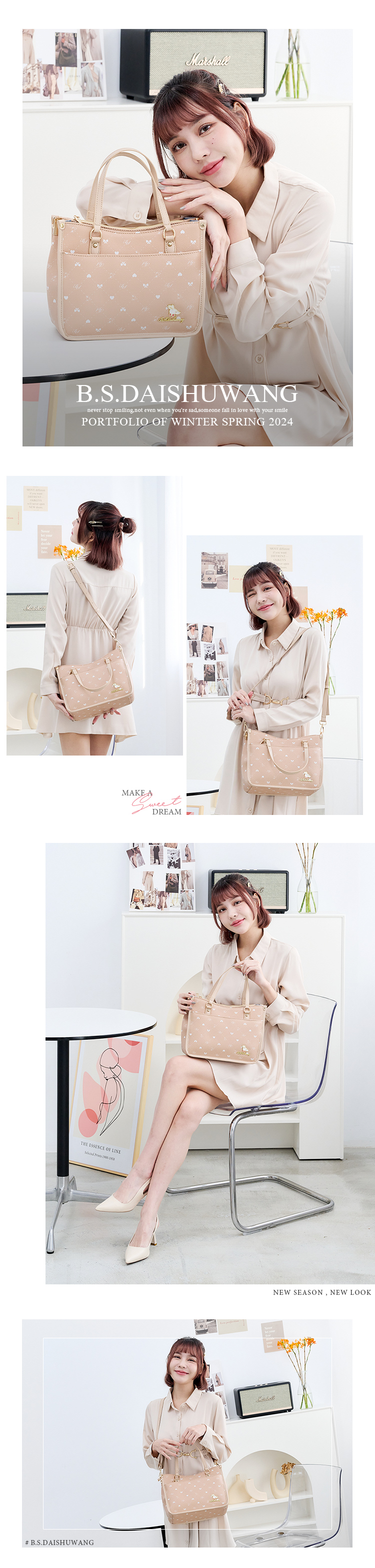 B.S.D.S冰山袋鼠 - 布朗小姐 - 甜美實搭方型托特包 - 粉杏色【6156-C】