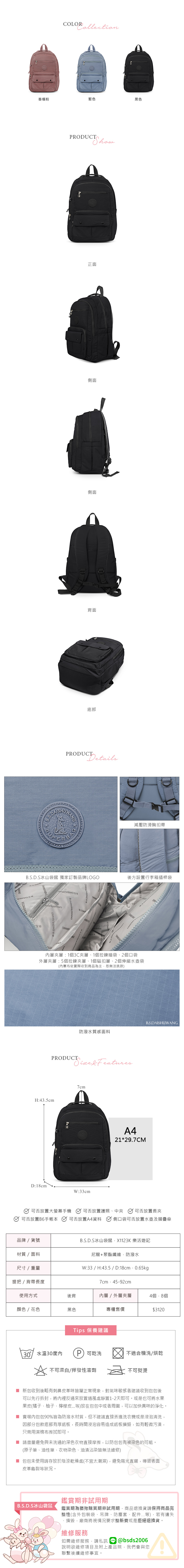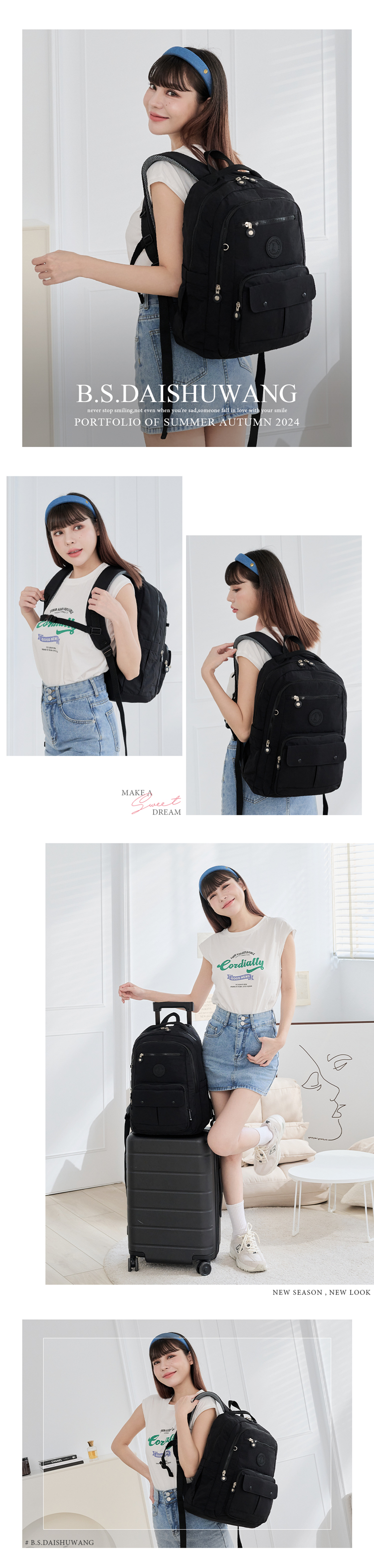 B.S.D.S冰山袋鼠 - 樂活遊記 - 格紋多口袋附插袋胸扣後背包 - 黑色【X1123K】