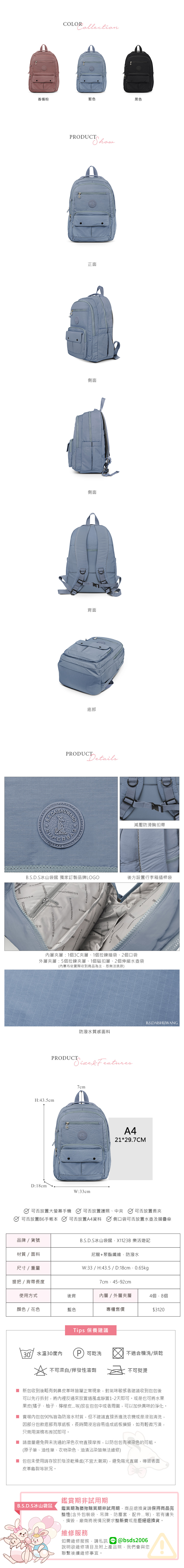 B.S.D.S冰山袋鼠 - 樂活遊記 - 格紋多口袋附插袋胸扣後背包 - 藍色【X1123B】