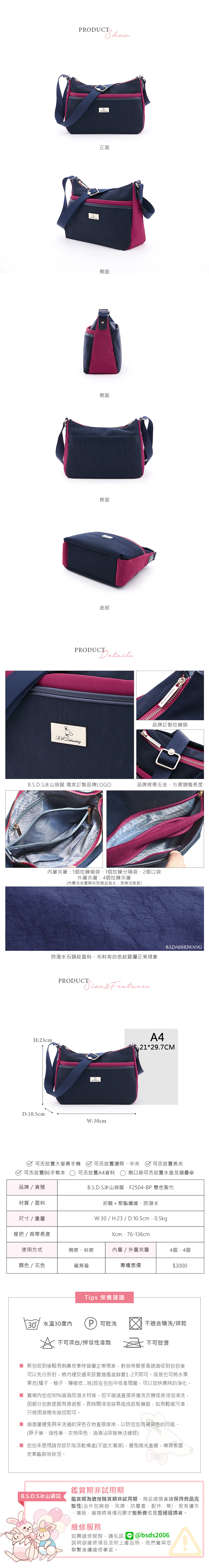 B.S.D.S冰山袋鼠 - 雙色聖代 - 玩色實搭休閒輕量斜背包 - 藏青莓【F2504-BP】