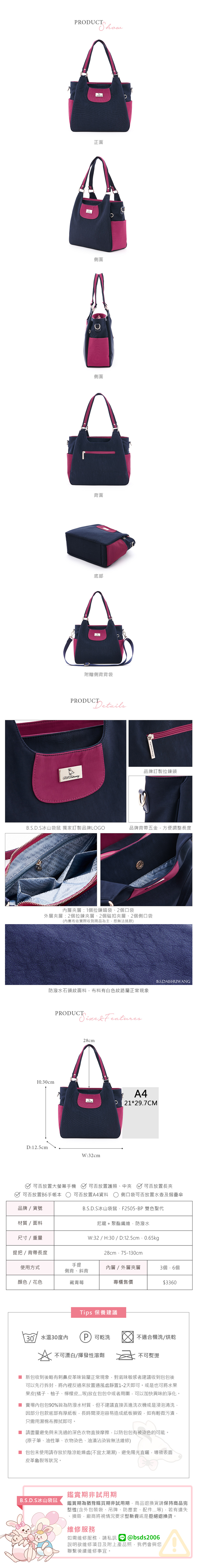 B.S.D.S冰山袋鼠 - 雙色聖代 - 玩色實搭兩用托特包 - 藏青莓【F2505-BP】