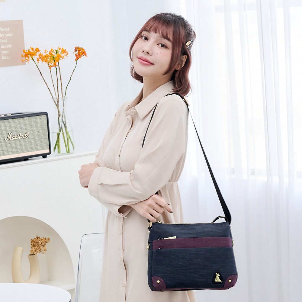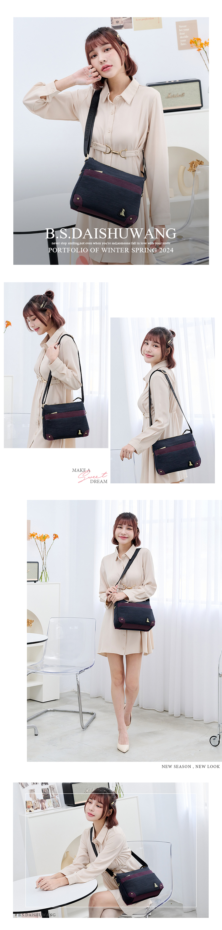 B.S.D.S冰山袋鼠 - 玩色主義 - 雙色多層百搭斜背包 - 野莓黑【9008-KU】