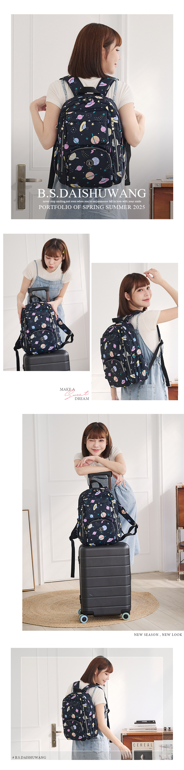 B.S.D.S冰山袋鼠 - 楓糖瑪芝 - 大容量附插袋後背包 - 星球黑【Z060KK】
