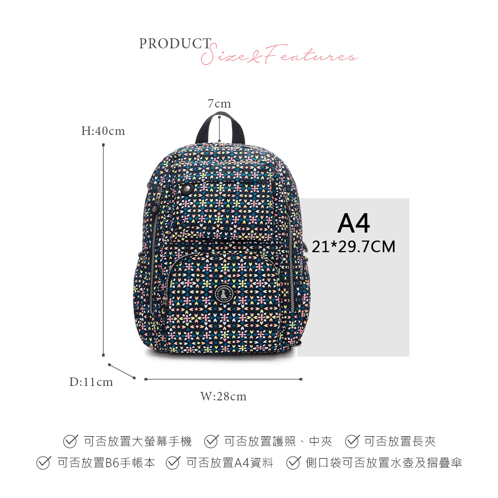 B.S.D.S冰山袋鼠 - 楓糖瑪芝 - 大容量附插袋後背包 - 萬花筒【Z060XF】