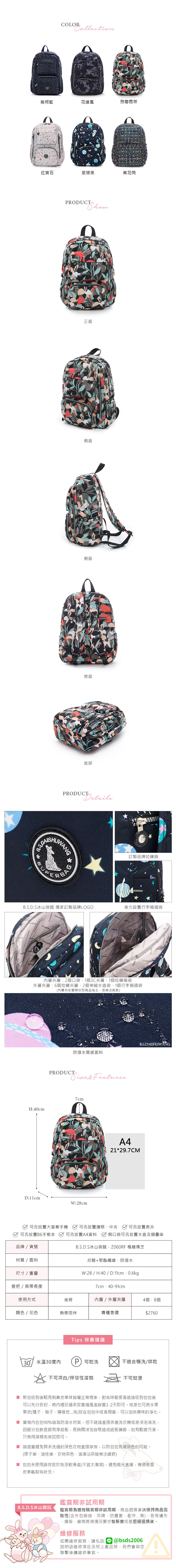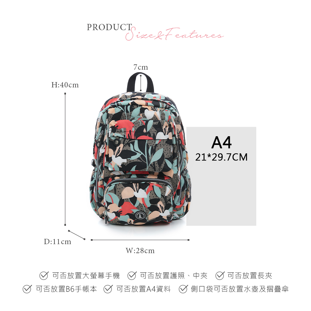 B.S.D.S冰山袋鼠 - 楓糖瑪芝 - 大容量附插袋後背包 - 熱帶雨林【Z060RF】