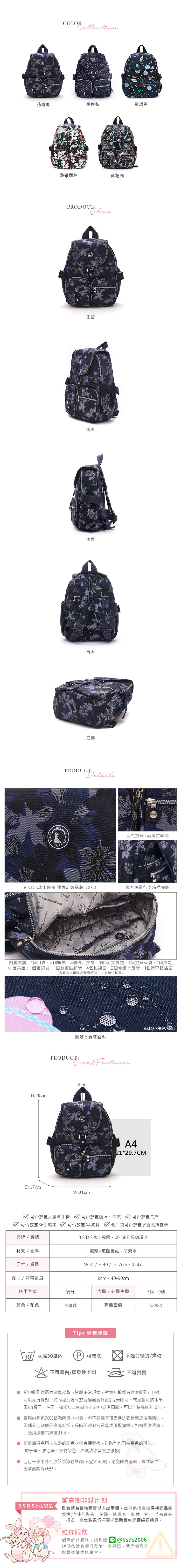 B.S.D.S冰山袋鼠 - 楓糖瑪芝 - 加大款附插袋後背包 - 花繪風【0015BF】