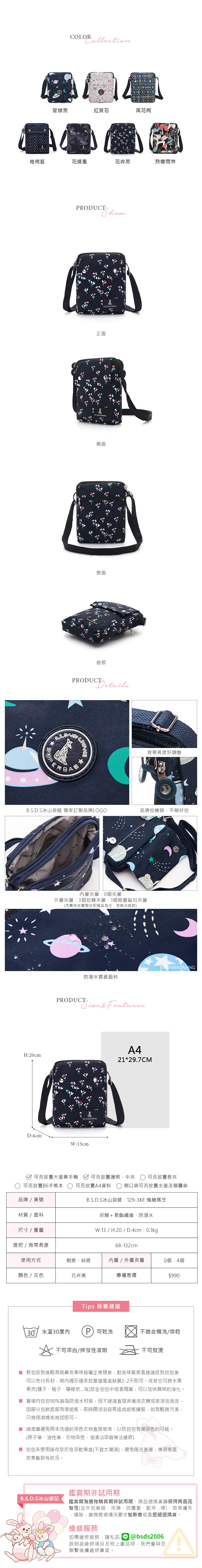 B.S.D.S冰山袋鼠 - 楓糖瑪芝 - 直立雙層斜背小包 - 花卉黑【129-3KF】