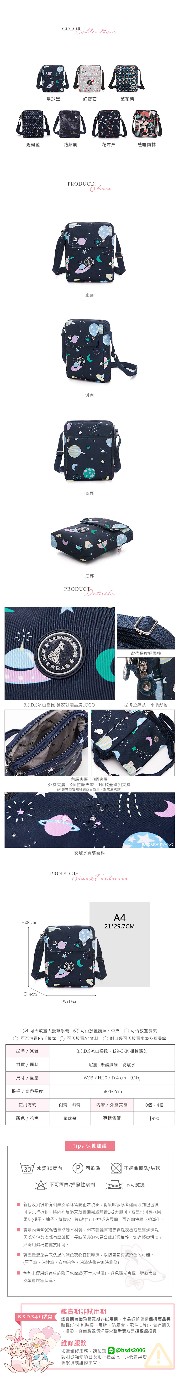 B.S.D.S冰山袋鼠 - 楓糖瑪芝 - 直立雙層斜背小包 - 星球黑【129-3KK】