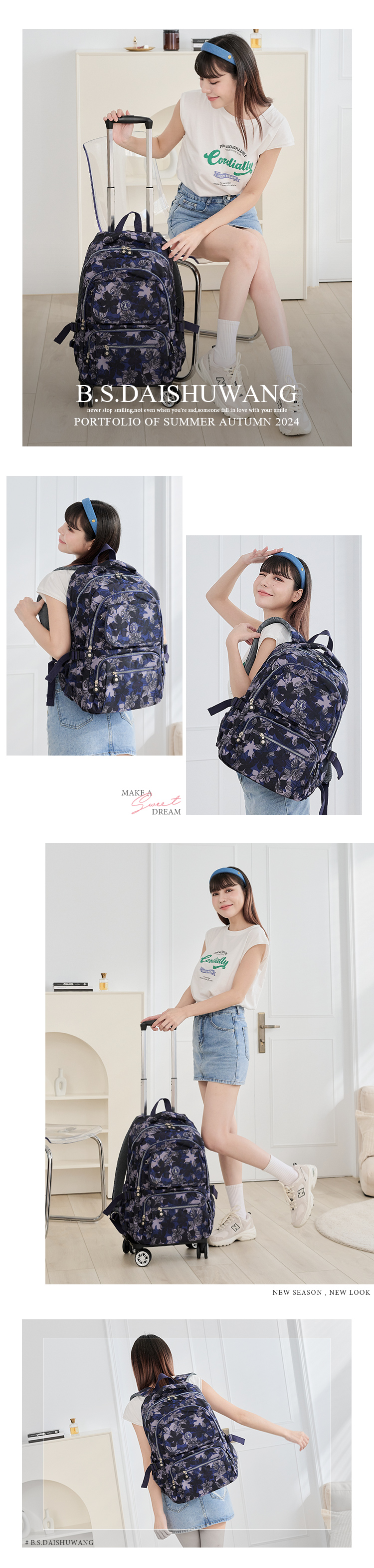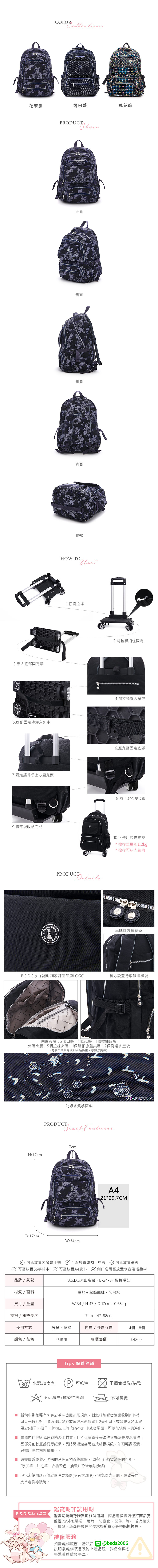 B.S.D.S冰山袋鼠 - 楓糖瑪芝 - 輕旅大容量拉桿後背包 - 花繪風【B-24-BF】