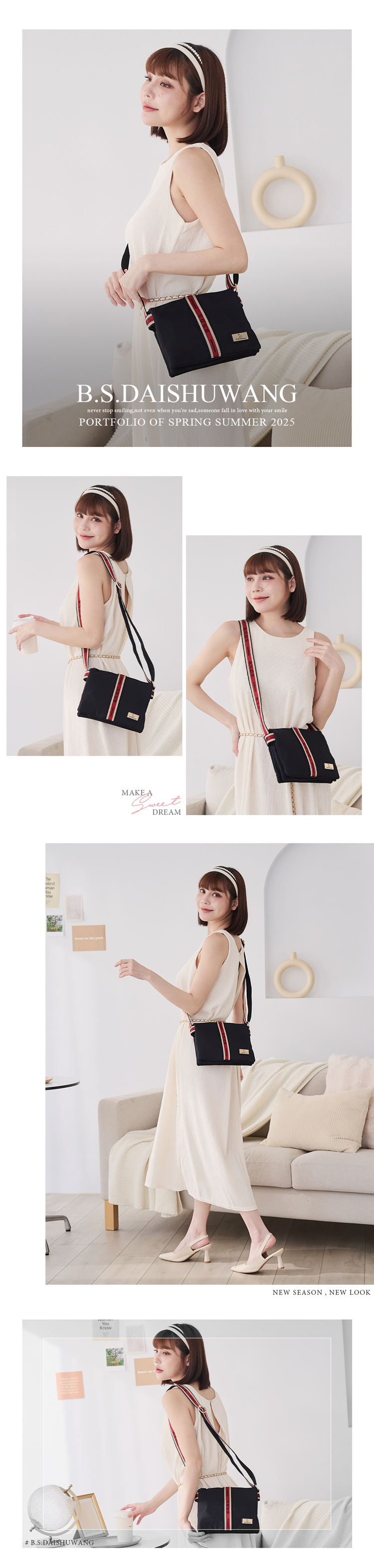 B.S.D.S冰山袋鼠 - 非常莓好 - 織帶拼接三層收納斜背包 - 紅磚黑【8003-KR】