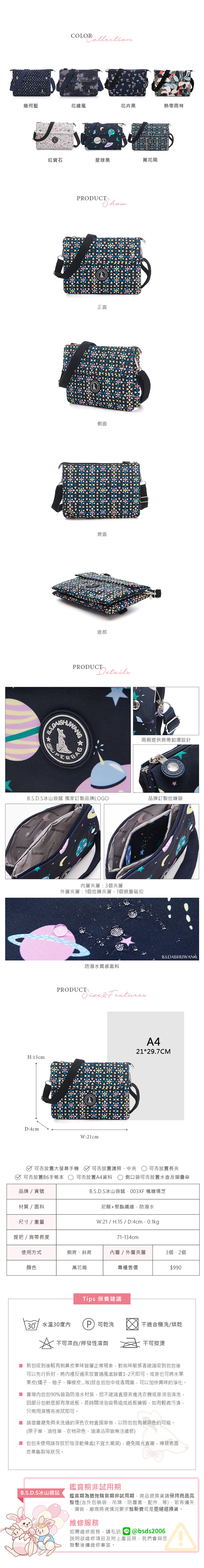 B.S.D.S冰山袋鼠 - 楓糖瑪芝 - 橫式三層斜背小包 - 萬花筒【003XF】