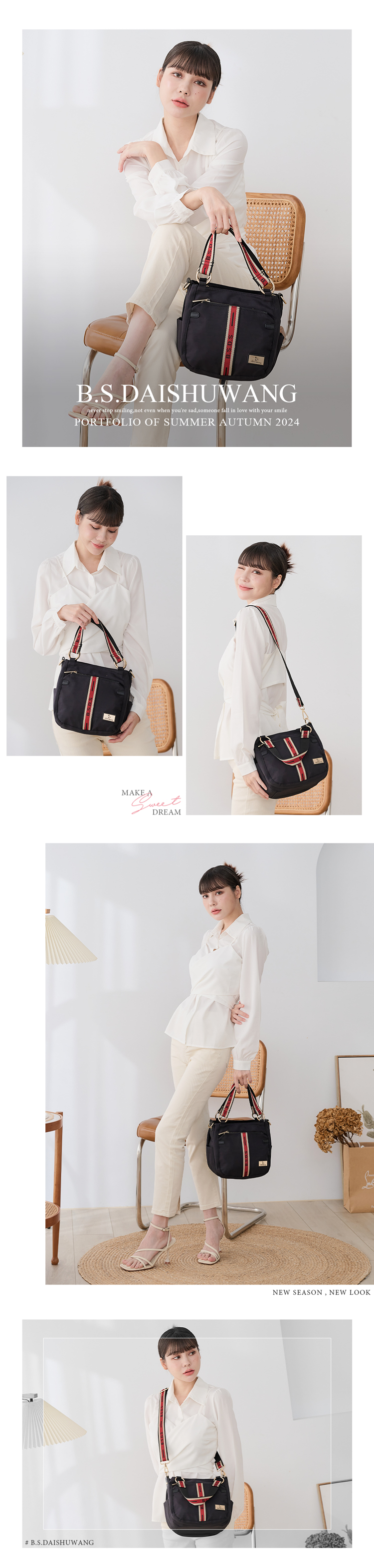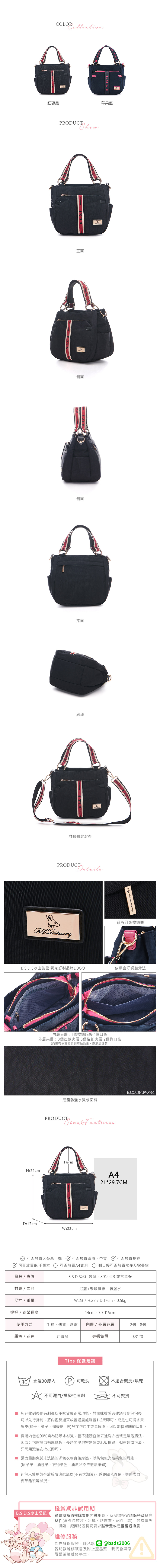 B.S.D.S冰山袋鼠 - 非常莓好 - 織帶拼接手提兩用包 - 紅磚黑【8012-KR】