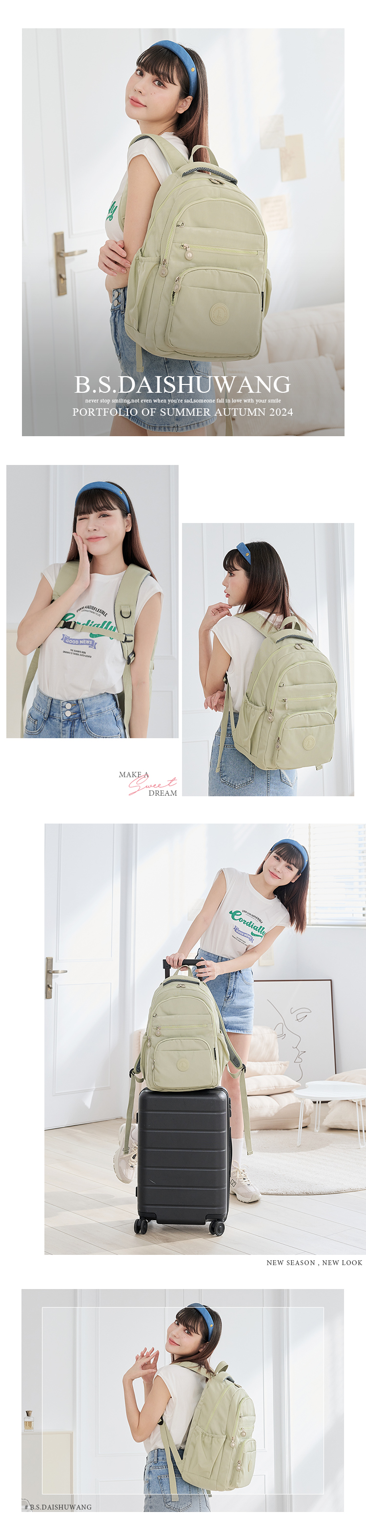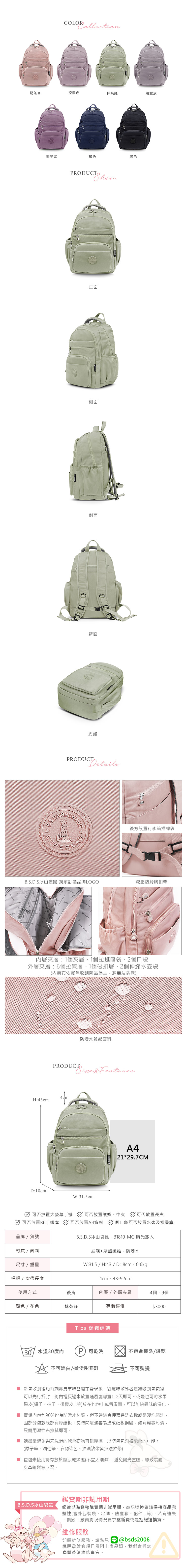 B.S.D.S冰山袋鼠 - 時光旅人 - 知性大容量附插袋胸扣後背包 - 抹茶綠【B1810-MG】