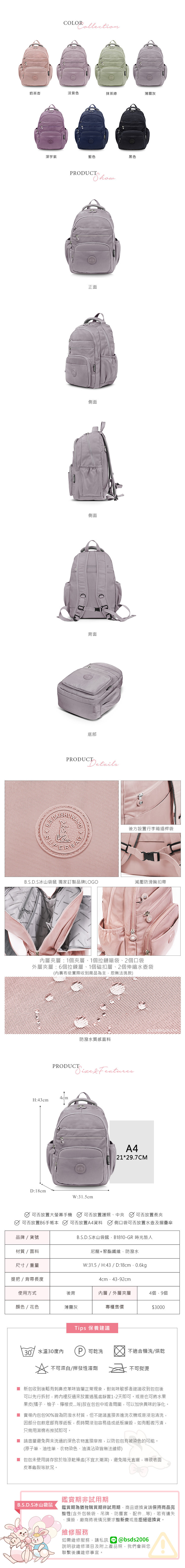 B.S.D.S冰山袋鼠 - 時光旅人 - 知性大容量附插袋胸扣後背包 - 薄霧灰【B1810-GR】