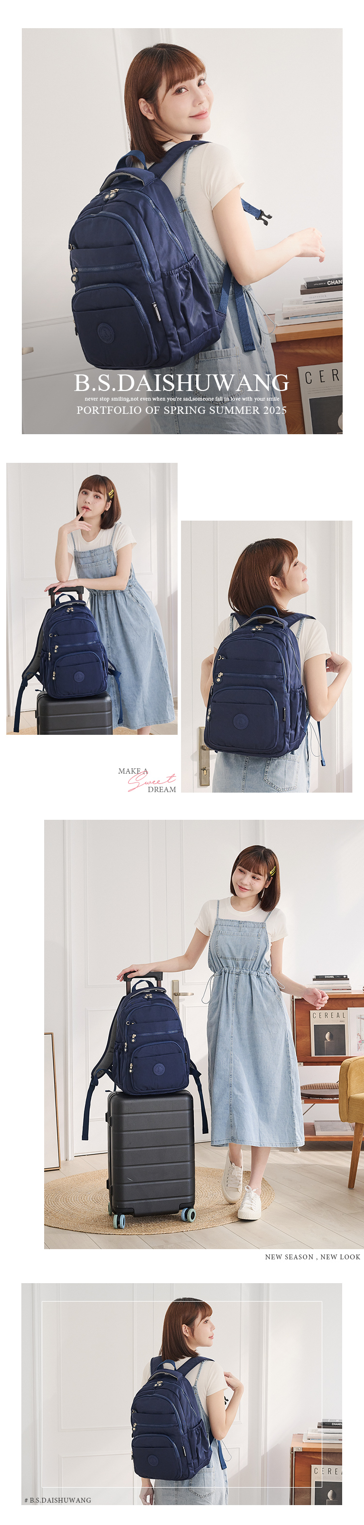 B.S.D.S冰山袋鼠 - 時光旅人 - 知性大容量附插袋胸扣後背包 - 藍色【B1810-B】