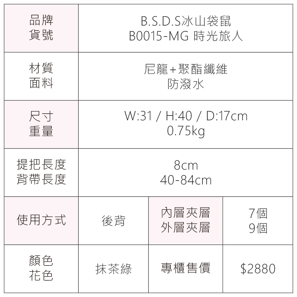 B.S.D.S冰山袋鼠 - 時光旅人 - 知性加大款附插袋後背包 - 抹茶綠【B0015-MG】