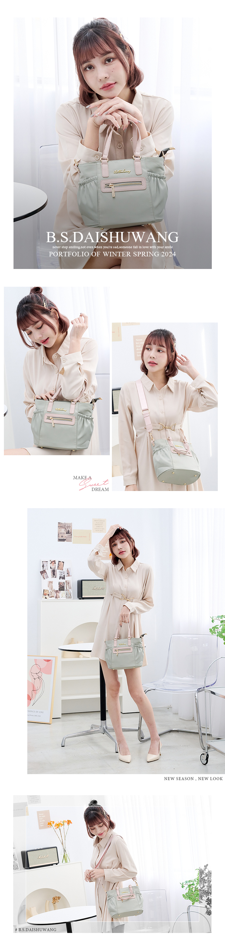 B.S.D.S冰山袋鼠 - 知性巴黎 - 優雅美學手提兩用微笑包 - 抹茶綠【J2028-G】