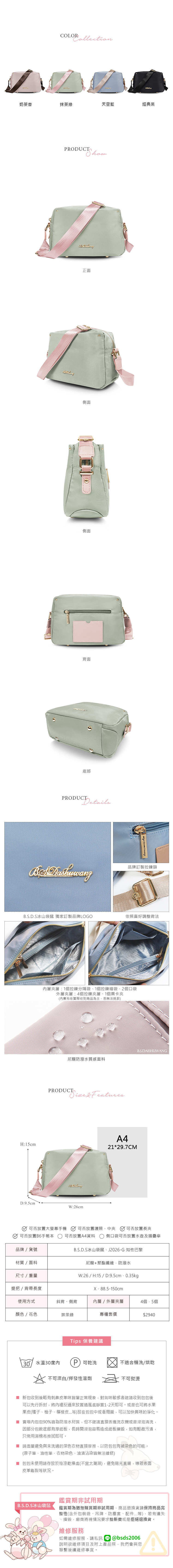 B.S.D.S冰山袋鼠 - 知性巴黎 - 優雅美學多層收納斜背包 - 抹茶綠【J2026-G】