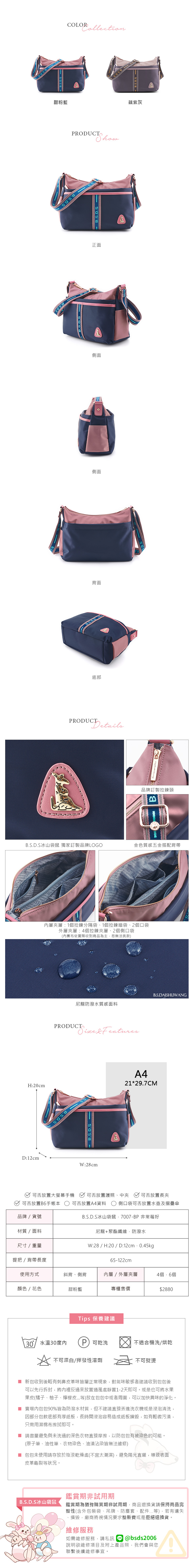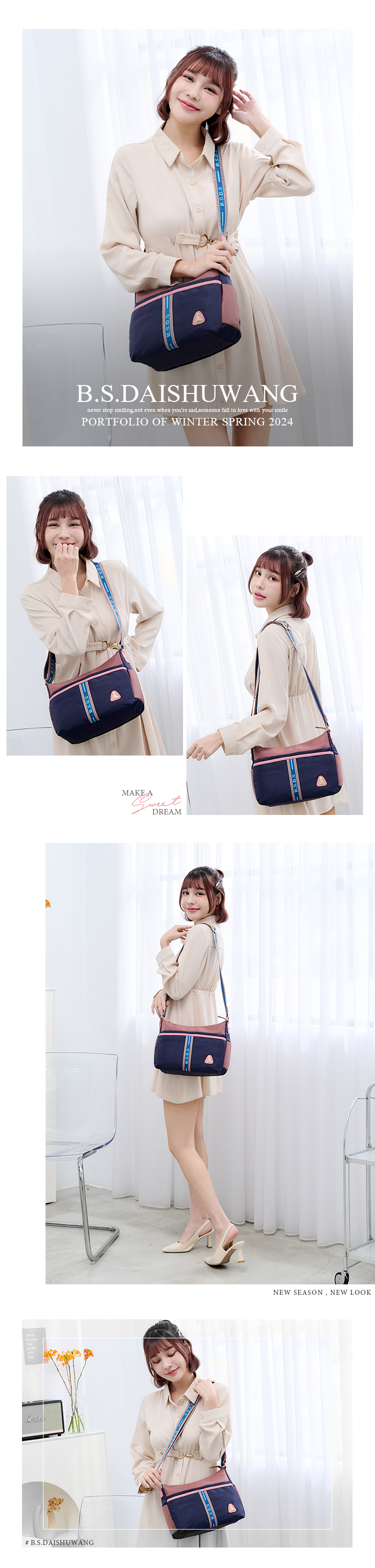 B.S.D.S冰山袋鼠 - 非常莓好 - 織帶拼接休閒輕量斜背包 - 甜粉藍【7007-BP】