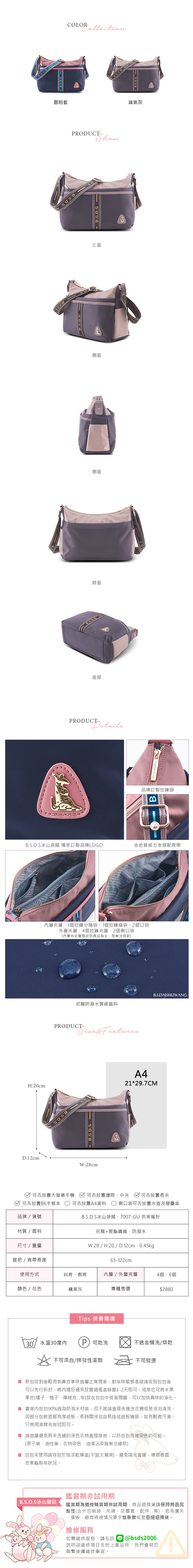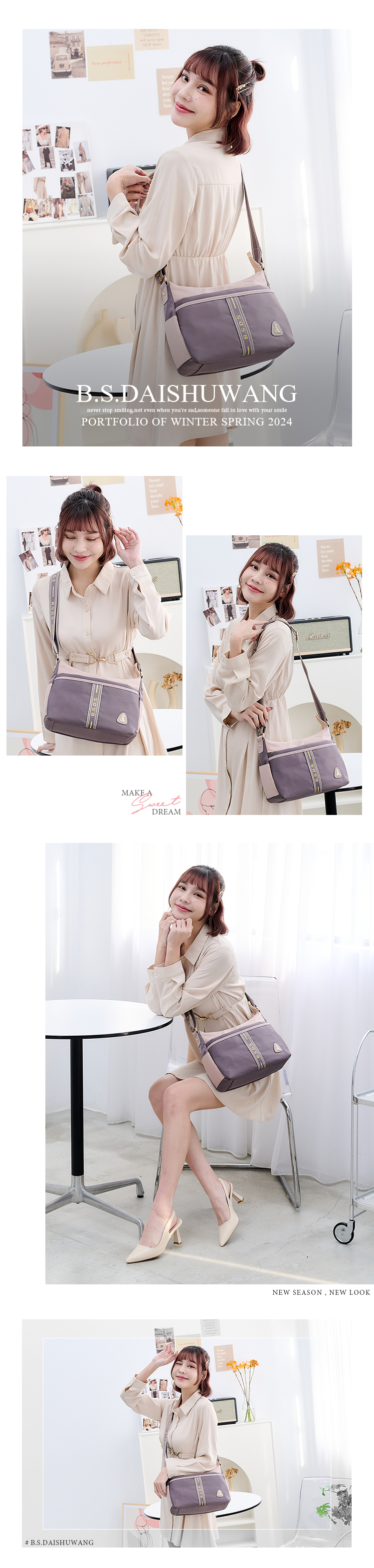 B.S.D.S冰山袋鼠 - 非常莓好 - 織帶拼接休閒輕量斜背包 - 藕紫灰【7007-GU】