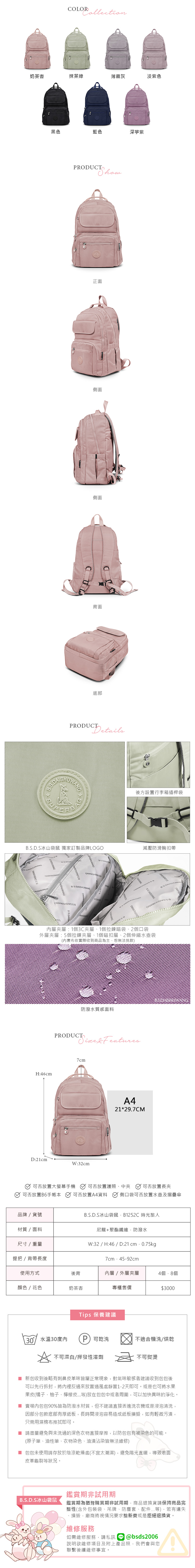 B.S.D.S冰山袋鼠 - 時光旅人 - 知性多口袋附插袋胸扣後背包 - 奶茶杏【B1252C】