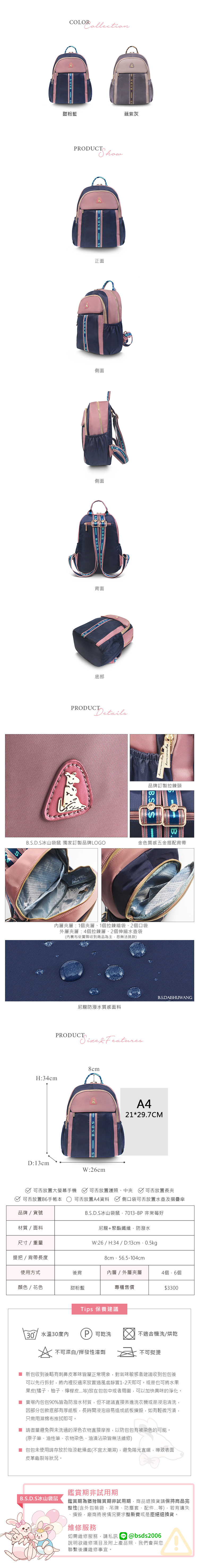 B.S.D.S冰山袋鼠 - 非常莓好 - 織帶拼接多夾層後背包 - 甜粉藍【7013-BP】