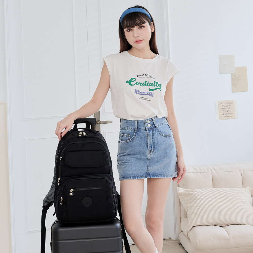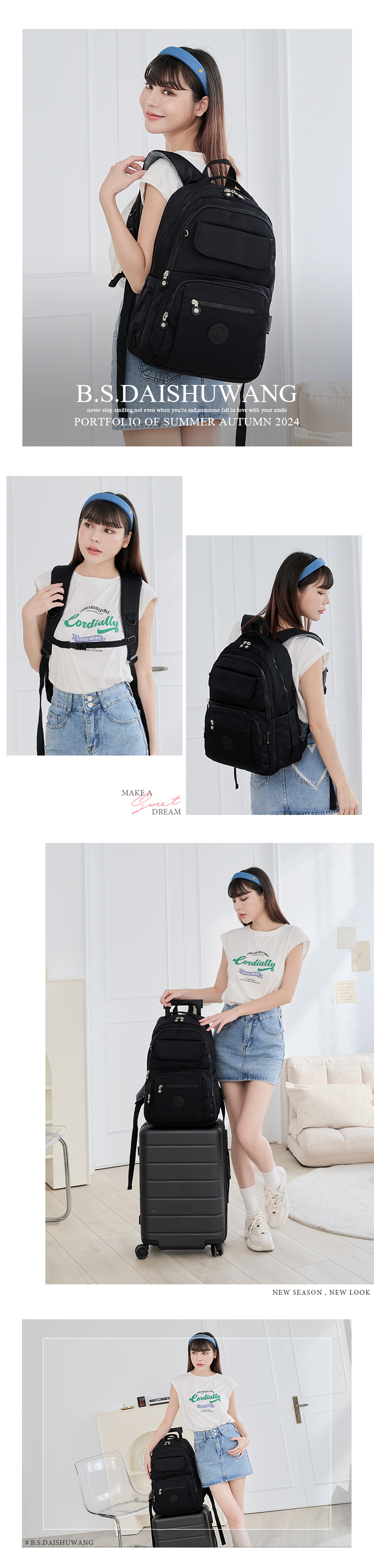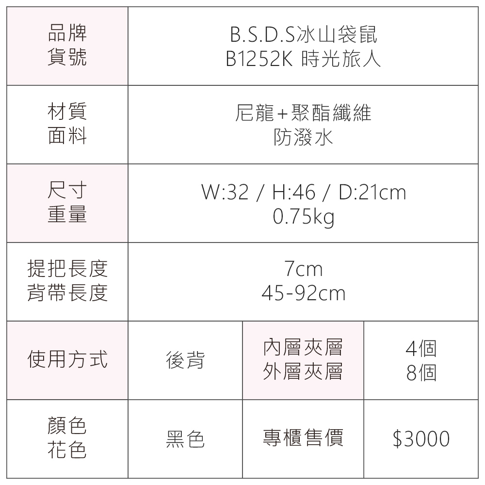 B.S.D.S冰山袋鼠 - 時光旅人 - 知性多口袋附插袋胸扣後背包 - 黑色【B1252K】