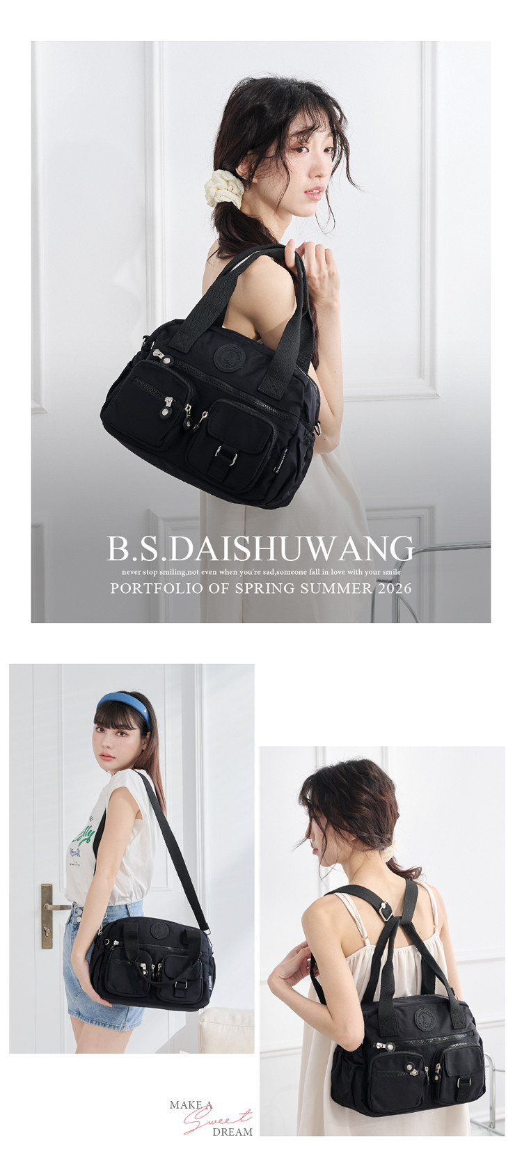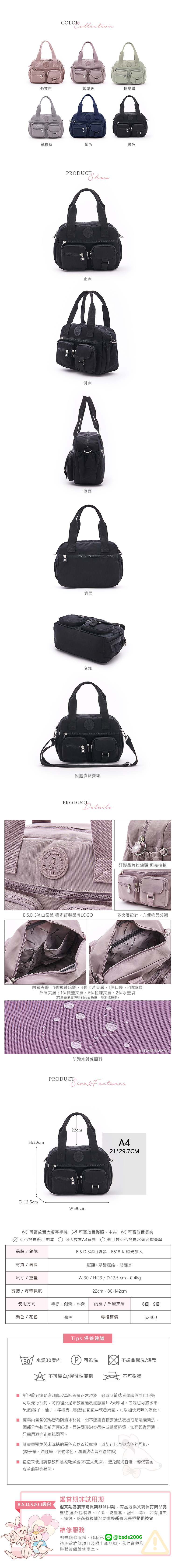 B.S.D.S冰山袋鼠 - 時光旅人 - 知性多夾層兩用手提包 - 黑色【B518-K】