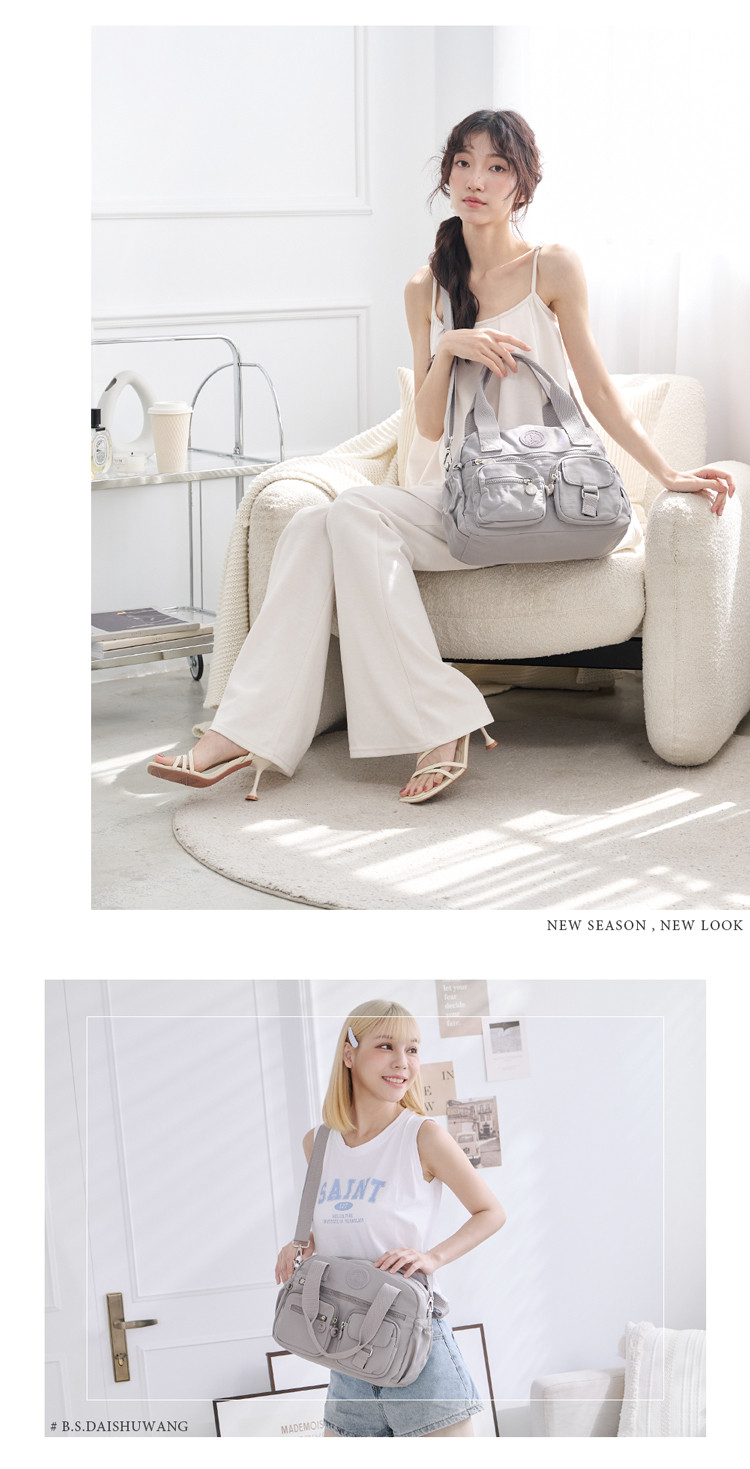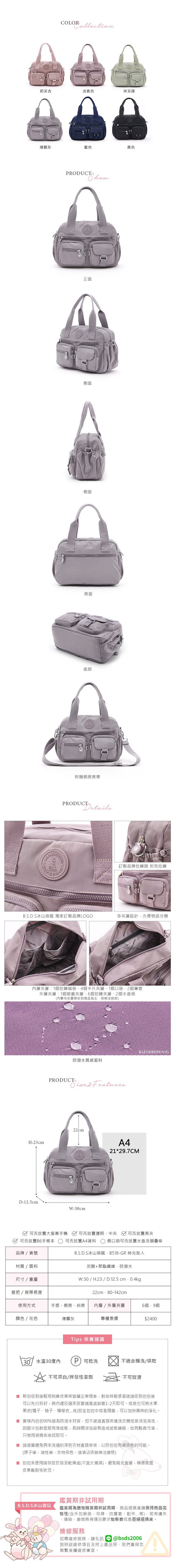 B.S.D.S冰山袋鼠 - 時光旅人 - 知性多夾層兩用手提包 - 薄霧灰【B518-GR】