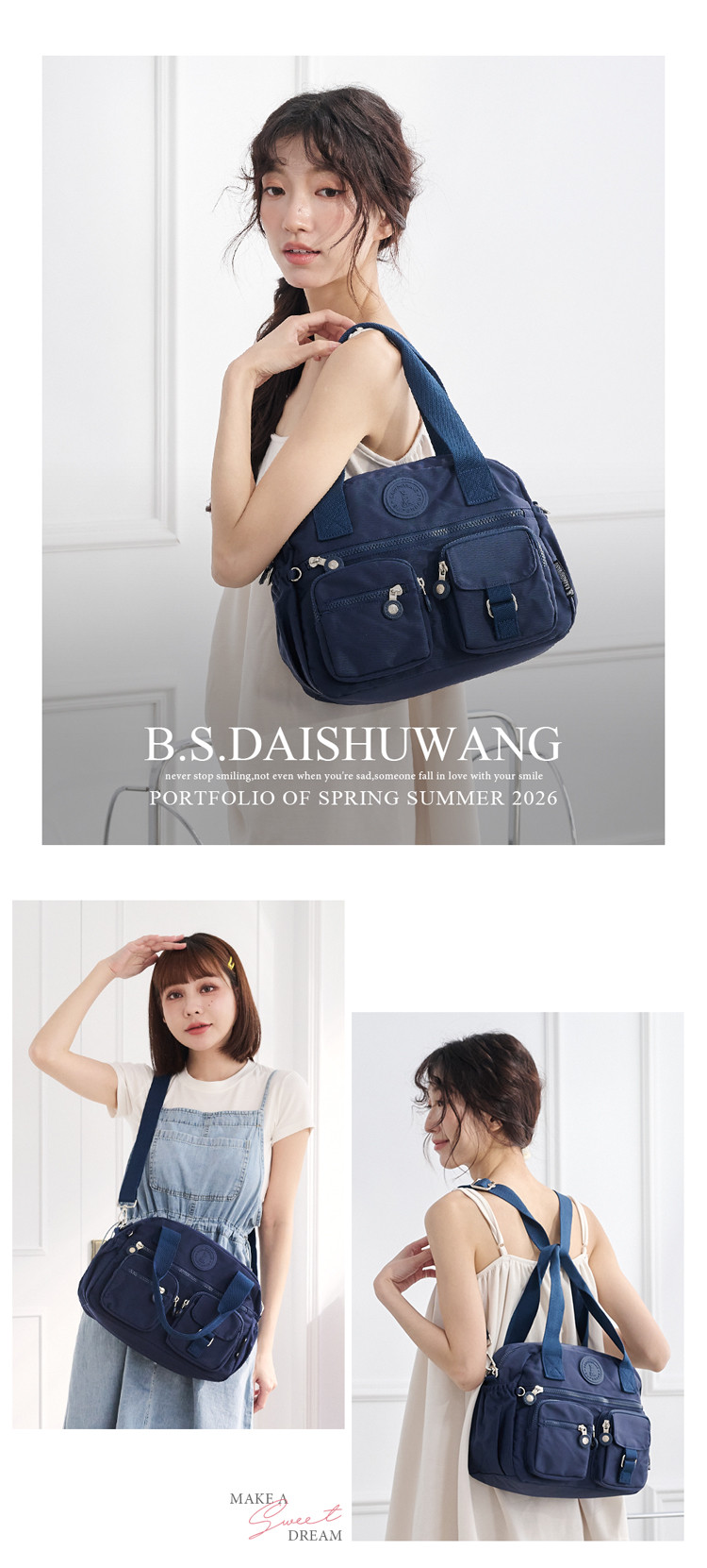B.S.D.S冰山袋鼠 - 時光旅人 - 知性多夾層兩用手提包 - 藍色【B518-B】