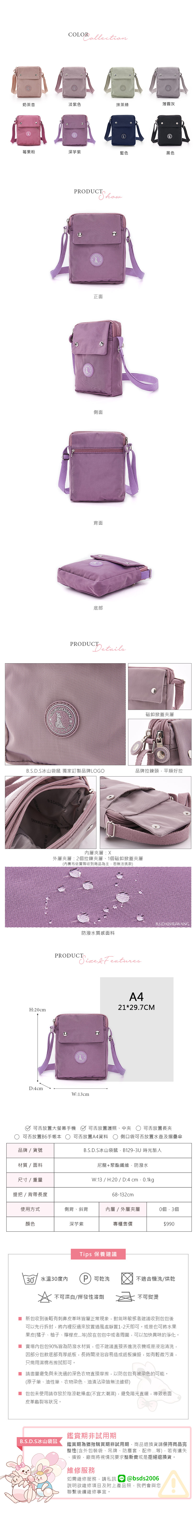 B.S.D.S冰山袋鼠 - 時光旅人 - 知性直立雙層斜背小包 - 深芋紫【B129-3U】
