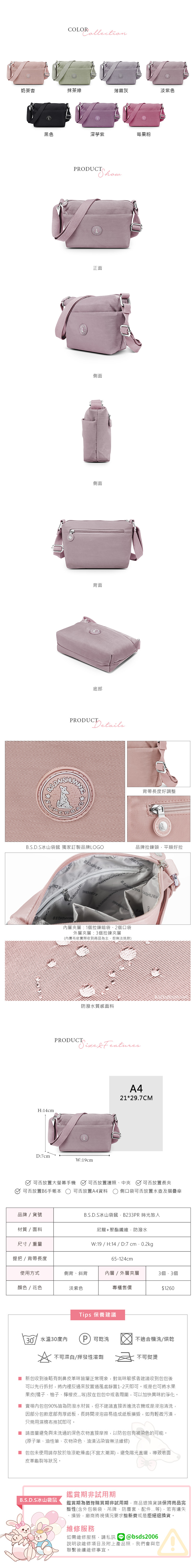 B.S.D.S冰山袋鼠 - 時光旅人 - 知性輕巧收納斜背小包 - 淡紫色【B233PR】